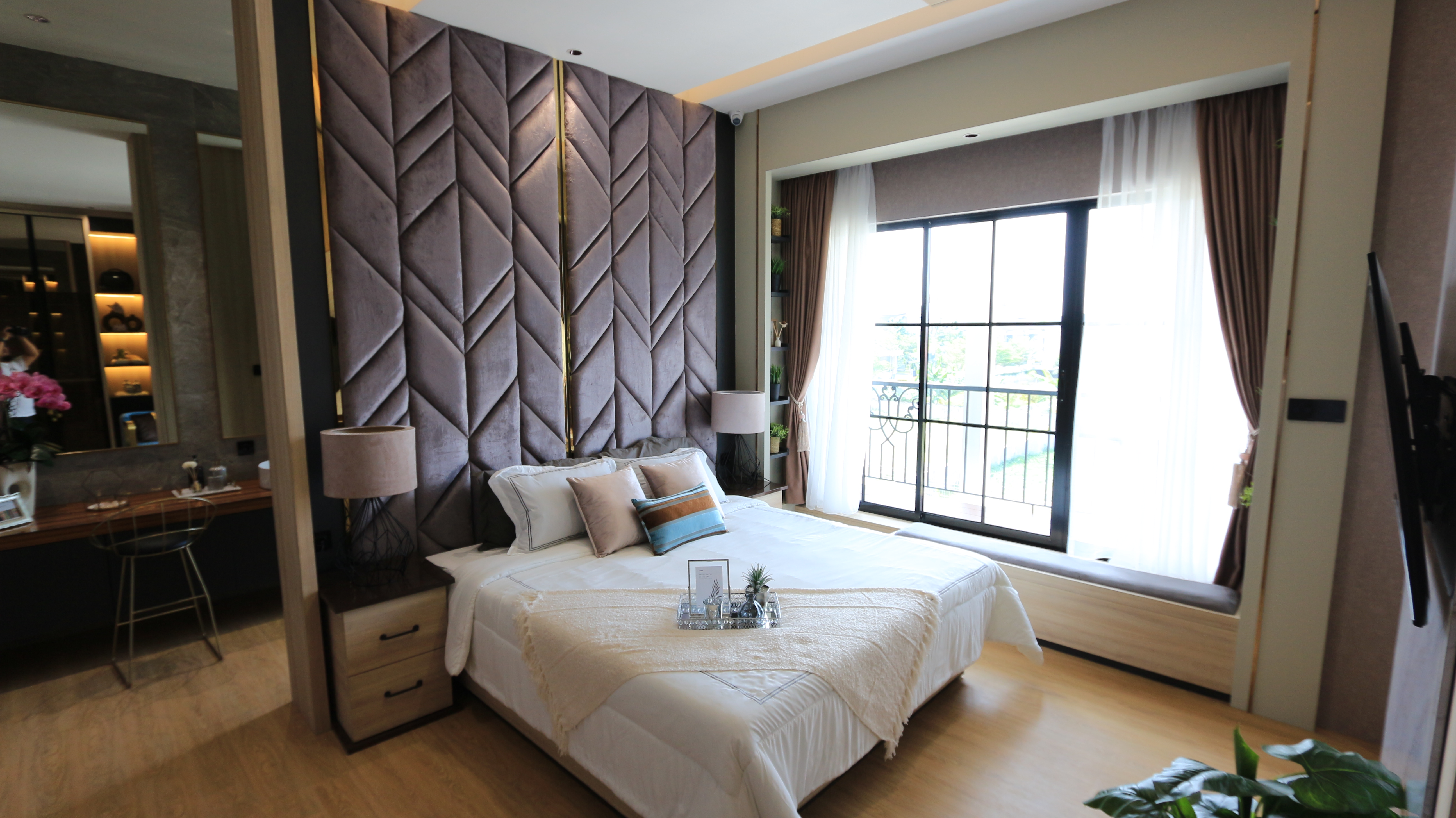 Tampilan kamar tidur tipe Kenzo, luas, nyaman, dan eksklusif.